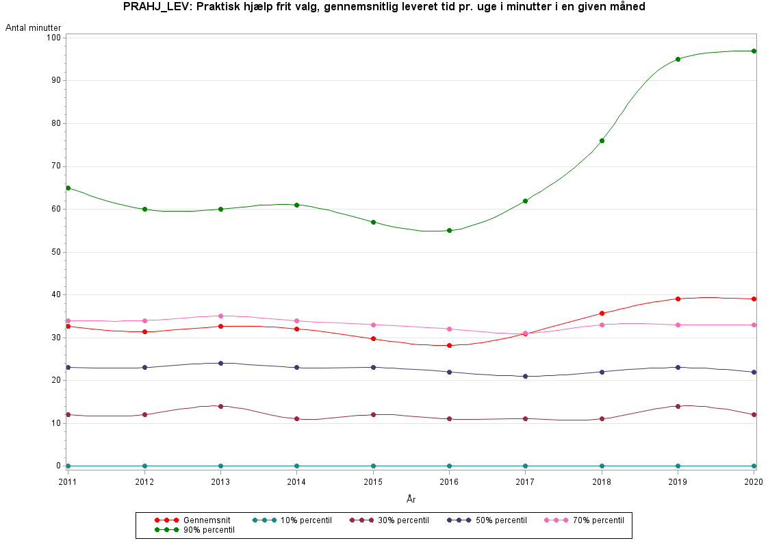 Praktisk hjælp frit valg, gennemsnitlig leveret tid pr. uge i minutter i en given måned - fordelt på leverandørGyldighed