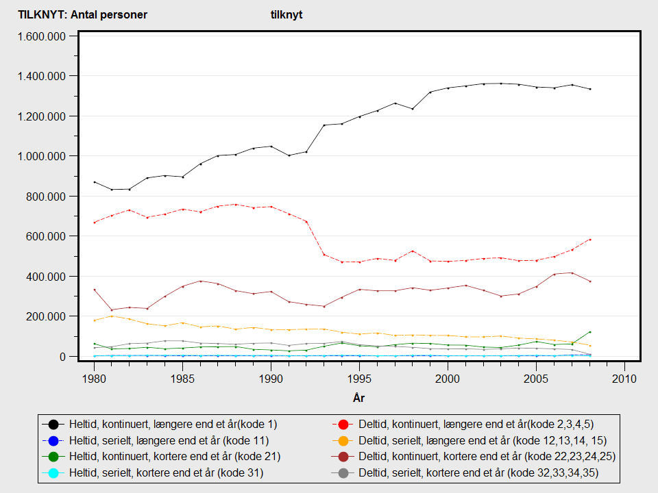 | 13 | Deltid (>= 20-29 timer), serielt, længere end et år | 01-01-1980 | 31-12-3000 |