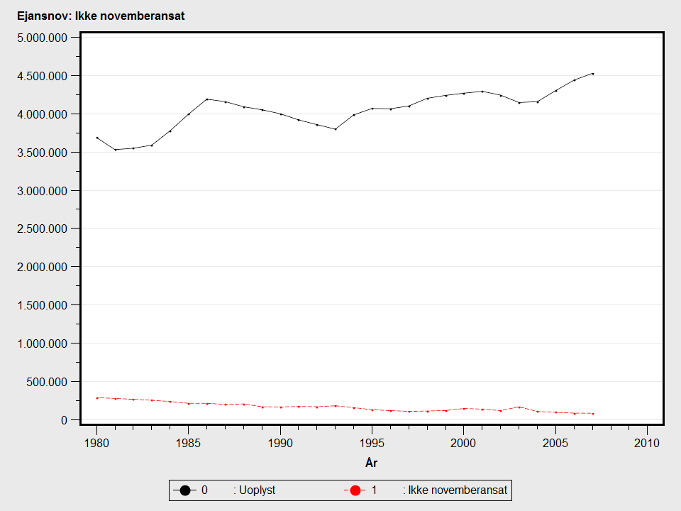 Variablen EJANSNOV er en krydsmarkering på oplysningssedlen, der angiver, om den enkelte lønmodtager har været ansat ultimo november.Detaljeret beskrivelse