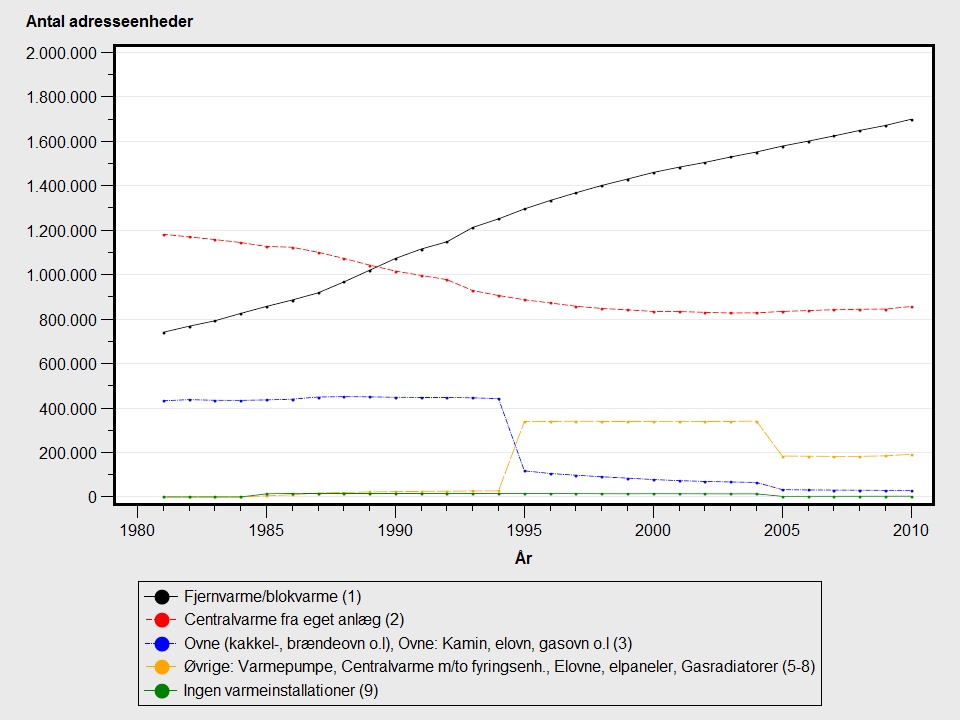Databrud: Ekstent databrud i 1994-1995 fremgår af værdisæt og skyldes, at elradiatorer fra da af adskilles fra ovne.