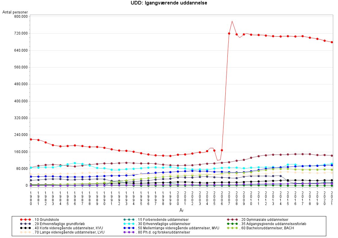 De 4-cifrede koder for uddannelser identificerer entydigt de enkelte uddannelser, men er i sig selv usystematiske og derfor ikke umiddelbart velegnet til udarbejdelse af statistik. Her benyttes i stedet de 8-cifrede såkaldte forspaltekoder, som angiver uddannelsens placering i en uddannelsesklassifikation. Se fx dokumentationen af HOVEDOMRAADE_DETALJERET.I nogle tilfælde skifter en uddannelse niveau, dvs. flytter fra et niveau i uddannelsesklassifikationen til et andet niveau. Sygeplejerskeuddannelsen var fx på et tidspunkt placeret som en kort videregående uddannelse, men er i dag placeret som en mellemlang videregående uddannelse.