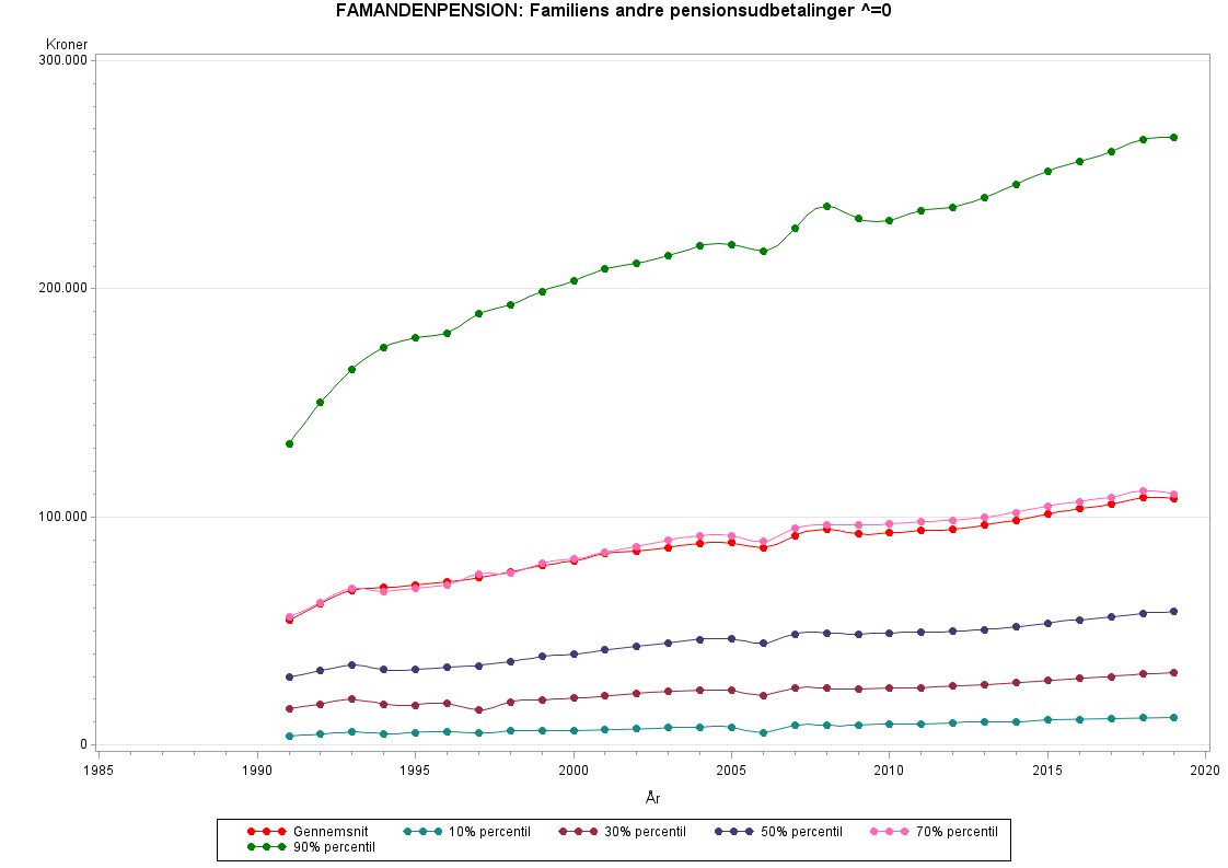 FAMANDENPENSION er lig med summen af QPENSPRI (i Personindkomster), pension fra udlandet (fra 1998) og pensionsudbetalinger fra tidligere arbejdsgiver (fra 1994) (variablen er ikke dannet for familier)