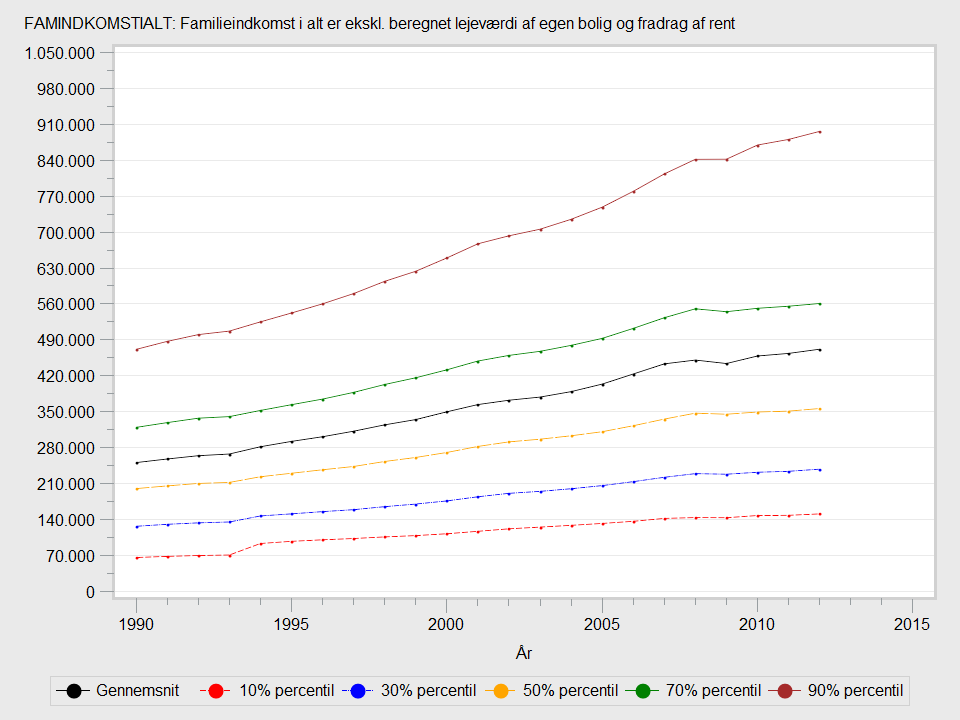 1991-2000 indgår aktieindkomster ikke i alle tilfælde i familieindkomsten - se dokumentet "aktieindkomstindberetning" i Personindkomster.