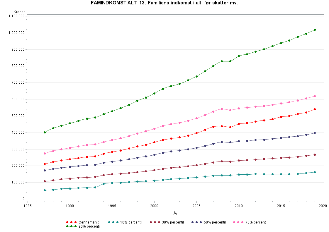 1991-2000 indgår aktieindkomster ikke i alle tilfælde i familieindkomsten - se dokumentet "aktieindkomstindberetning" i Personindkomster.
