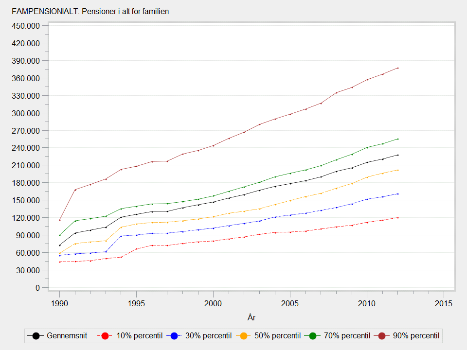 FAMPENSIONIALT består af folke- og førtidspension, delpension, skattefri tillæg til førtidspensionister, ATP-pension, efterløn, overgangsydelse (1992-2006), tjenestemandspension (fra 1991) samt private pensioner inkl. arbejdsgiveradministrerede ordninger.