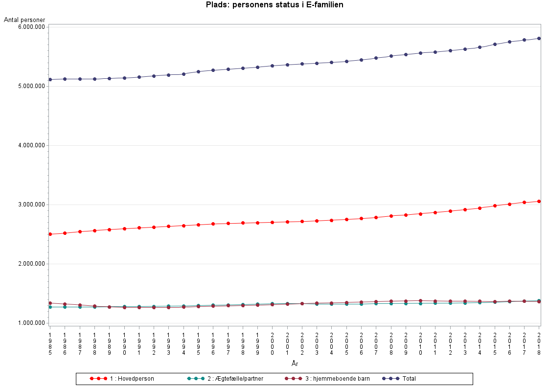 Angiver en persons status i familien, dvs. om en person (1) er familiens identificerende person, (2) er partner til denne person eller (3) er et hjemmeboende barn.PLADS har 3 værdier: 1, 2 og 3.