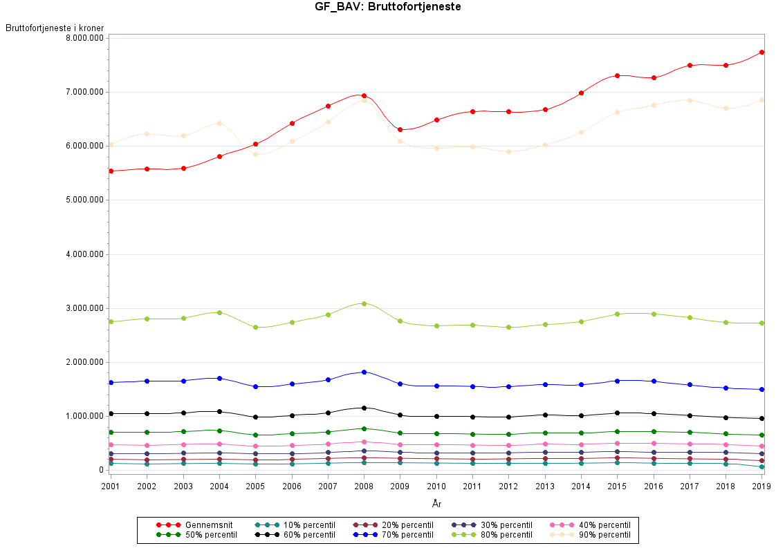 Bruttofortjenesten beregnes som omsætning minus vareforbrug minus køb af lønarbejde og underentrepriser. Målt i kroner.Detaljeret beskrivelse