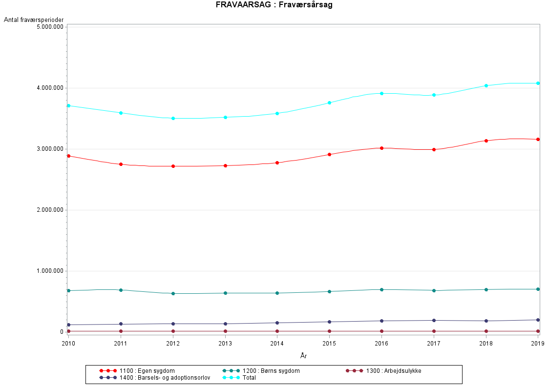 Statistikken offentliggøres på fire fraværsårsager:1100 - Egen sygdom