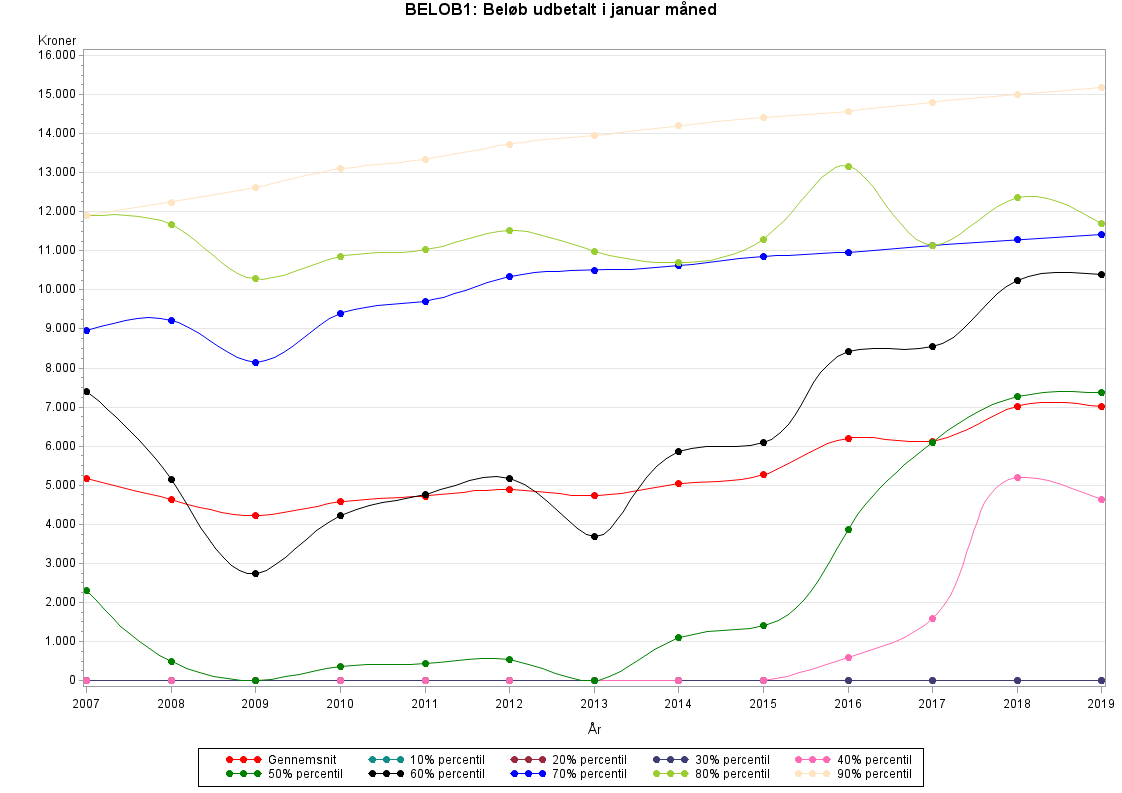 Udbetalt beløb i januar - beregnet ud fra, hvilken måned den sidste dag i den periode, som udbetalingen dækker, ligger i.Beløbet kan være negativt i forbindelse med efterreguleringer eller ved ydelser, der er bevilget med tilbagebetalingspligt, eller hvor ydelsen skal tilbagebetales, fx fordi modtageren har givet forkerte oplysninger til kommunen.Det sker ret ofte, at der udbetales et beløb, der dækker en længere periode. Især gælder det for løntilskudsordningerne, hvor beløbet udbetales til en arbejdsgiver.