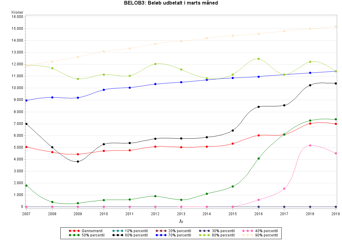 Udbetalt beløb i marts - beregnet ud fra, hvilken måned den sidste dag i den periode, som udbetalingen dækker, ligger i.Beløbet kan være negativt i forbindelse med efterreguleringer eller ved ydelser, der er bevilget med tilbagebetalingspligt, eller hvor ydelsen skal tilbagebetales, fx fordi modtageren har givet forkerte oplysninger til kommunen. Det sker ret ofte, at der udbetales et beløb, der dækker en længere periode. Især gælder det for løntilskudsordningerne, hvor beløbet udbetales til en arbejdsgiver.