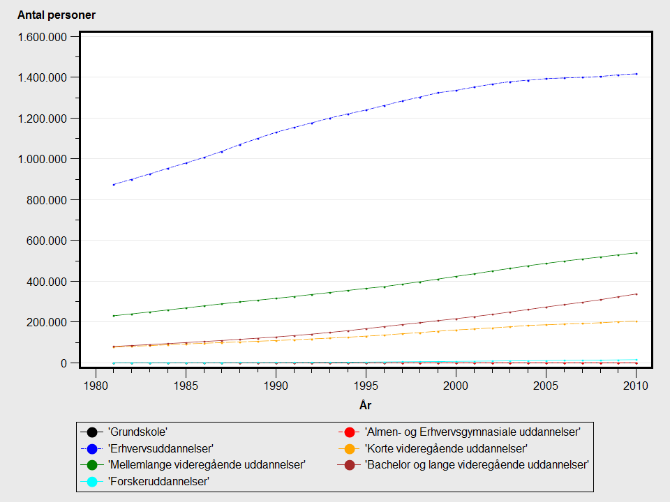 Personer i Danmarks Statistiks registre over højst fuldført erhvervskompetencegivende uddannelse