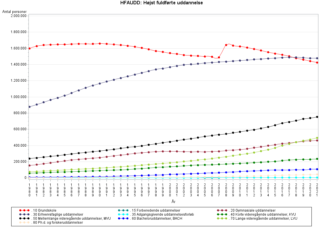 Personer i Danmarks Statistiks registre over højst fuldført uddannelse