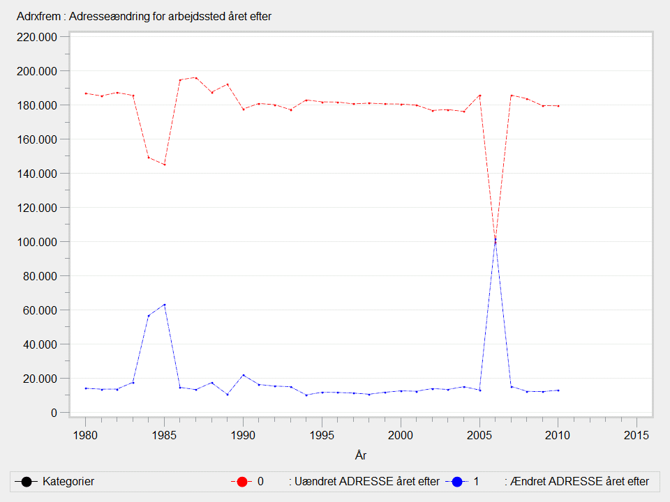 En adresseændring forekommer, hvis der er ændring i arbejdsstedets adresse året efter det aktuelle.