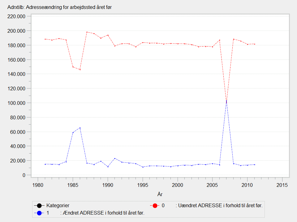 For en yderligere uddybning af kommunalreformens betydning for arbejdsstedsidentiteten henvises til variablen LBNR (arbejdsstedets løbenummer) under emnegruppen arbejdssteder.