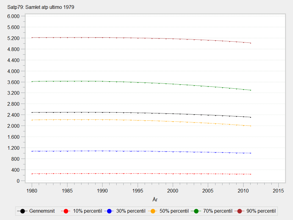 Beløbene ændrer sig således ikke år for år for den enkelte person, men antallet af personer i befolkningen med SATP79>0 kan ændres år for år.