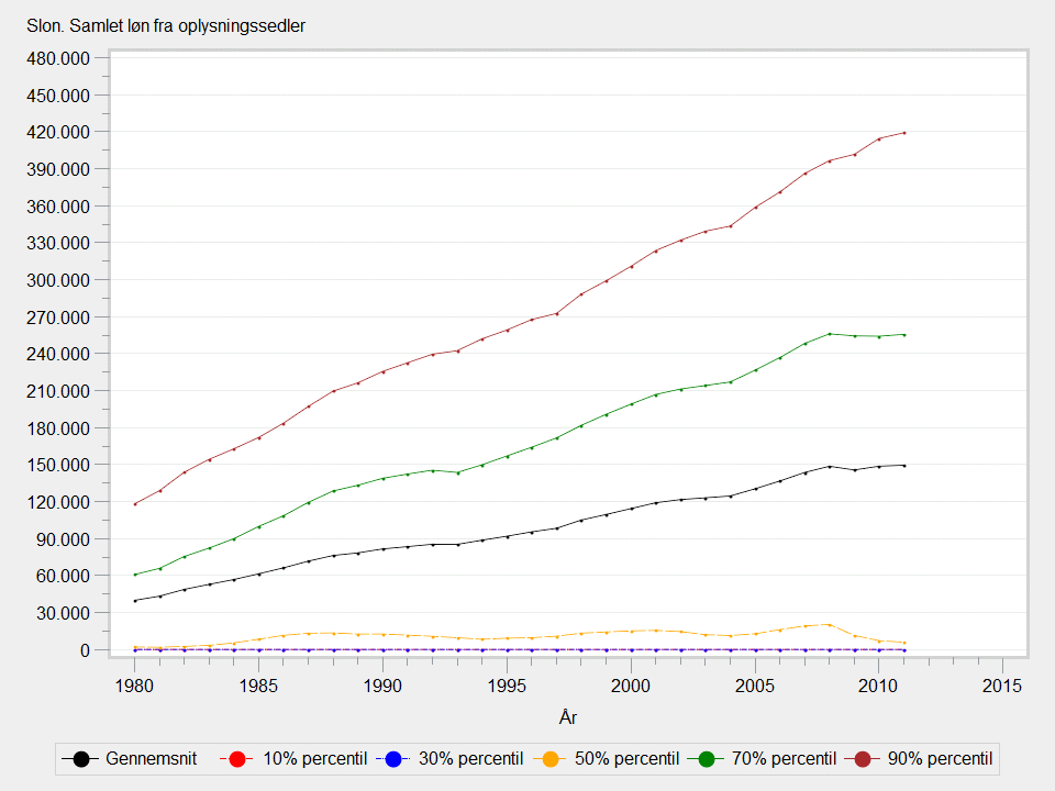 Graf og tabel er udarbejdet for personer med en lønindkomst i løbet af året der er >0.