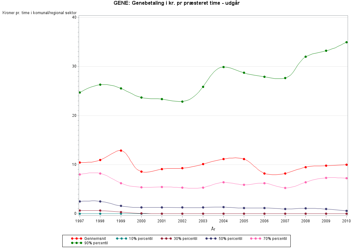 Genebetaling pr. præsteret time - udgårI 2009 blev GENE opsplittet i GENE_PRAE og OVERTID_PRAE i LONN registret. Variablen GENE findes dog i det gamle LON register indtil 2010.