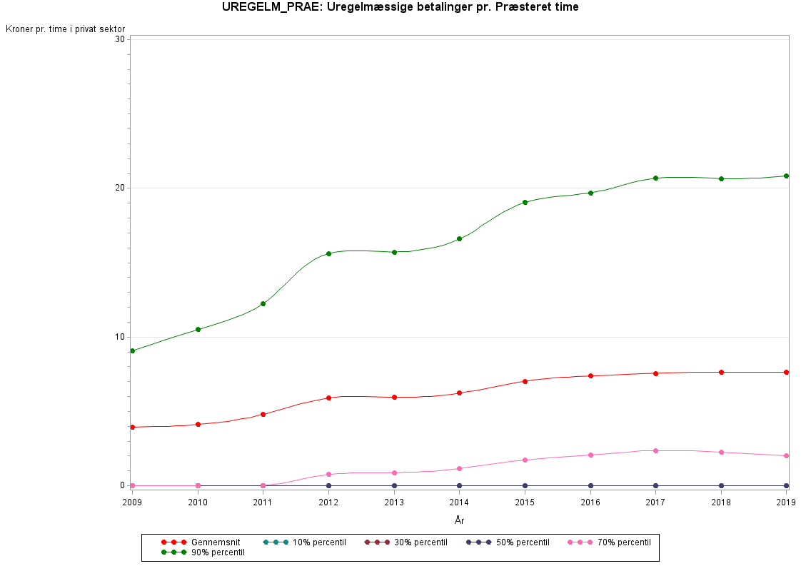Uregelmæssige betalinger pr. præsteret time i kr.Uregelmæssige betalinger hed før 2009 UREGLM og blev ikke opgjort på timebasis men derimod på årsbasis. UREGLM findes i det gamle LON register frem til år 2010, mens UREGELM_PRAE findes i LONN registret fra år 2009.