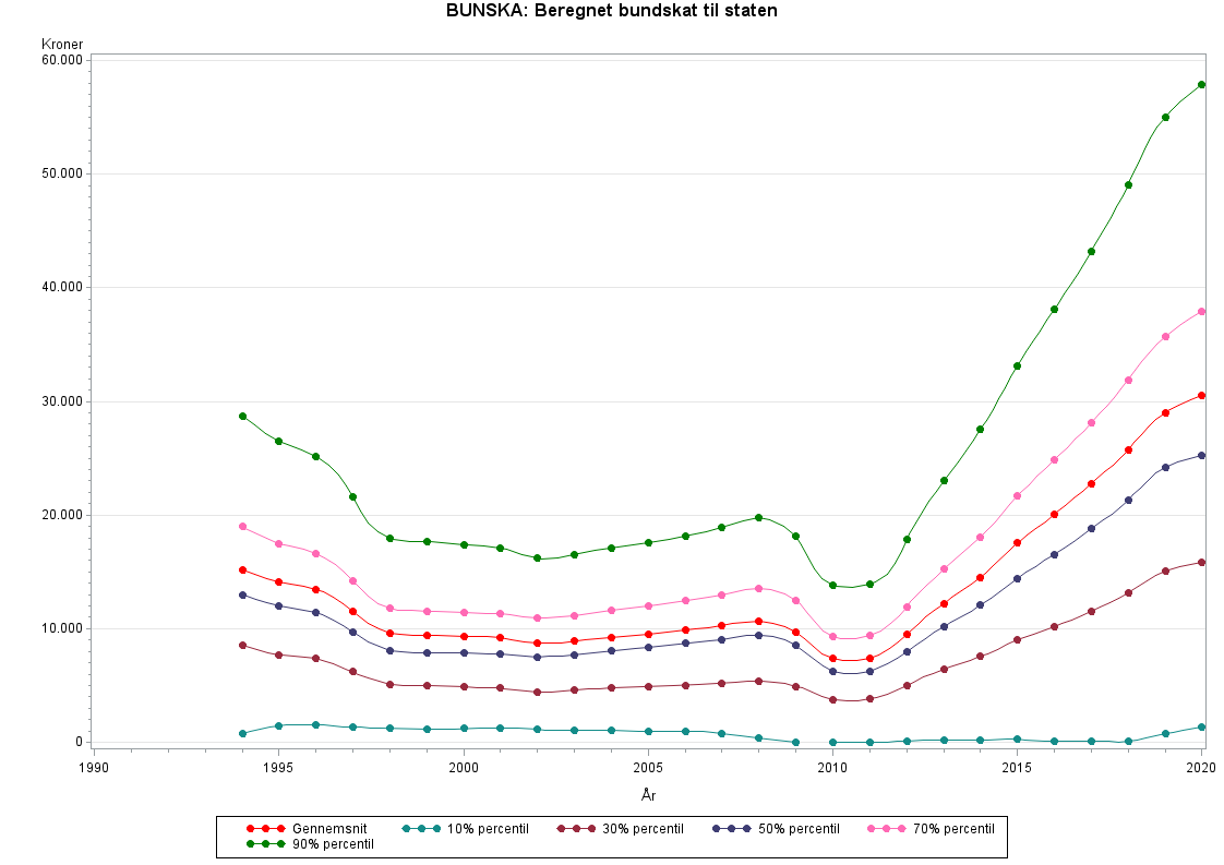 I 2008 var skattesatsen på bundskatten 5,48 pct.