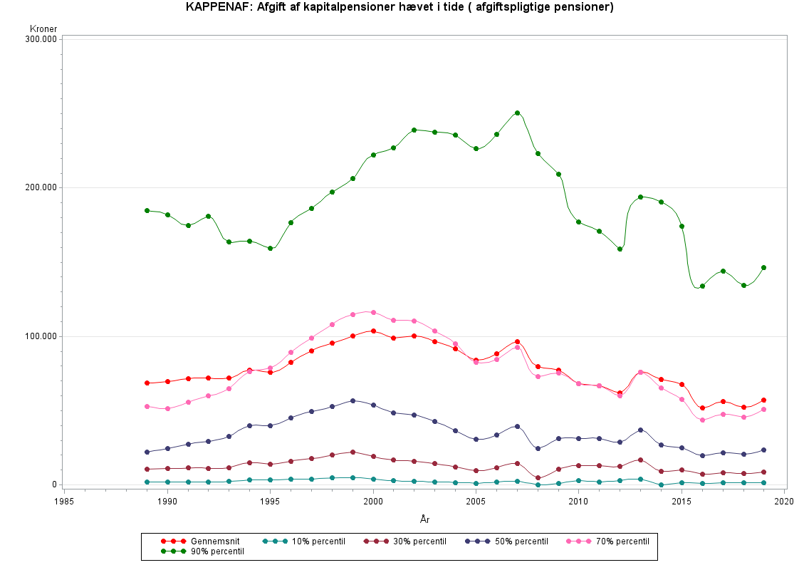 Afgift af kapitalpensioner (kapitalopsparing og kapitalforsikring hævet i tide).KAPPENAF er et heraf-beløb af variablen HAEVPENAF (afgift af alle hævede pensioner).