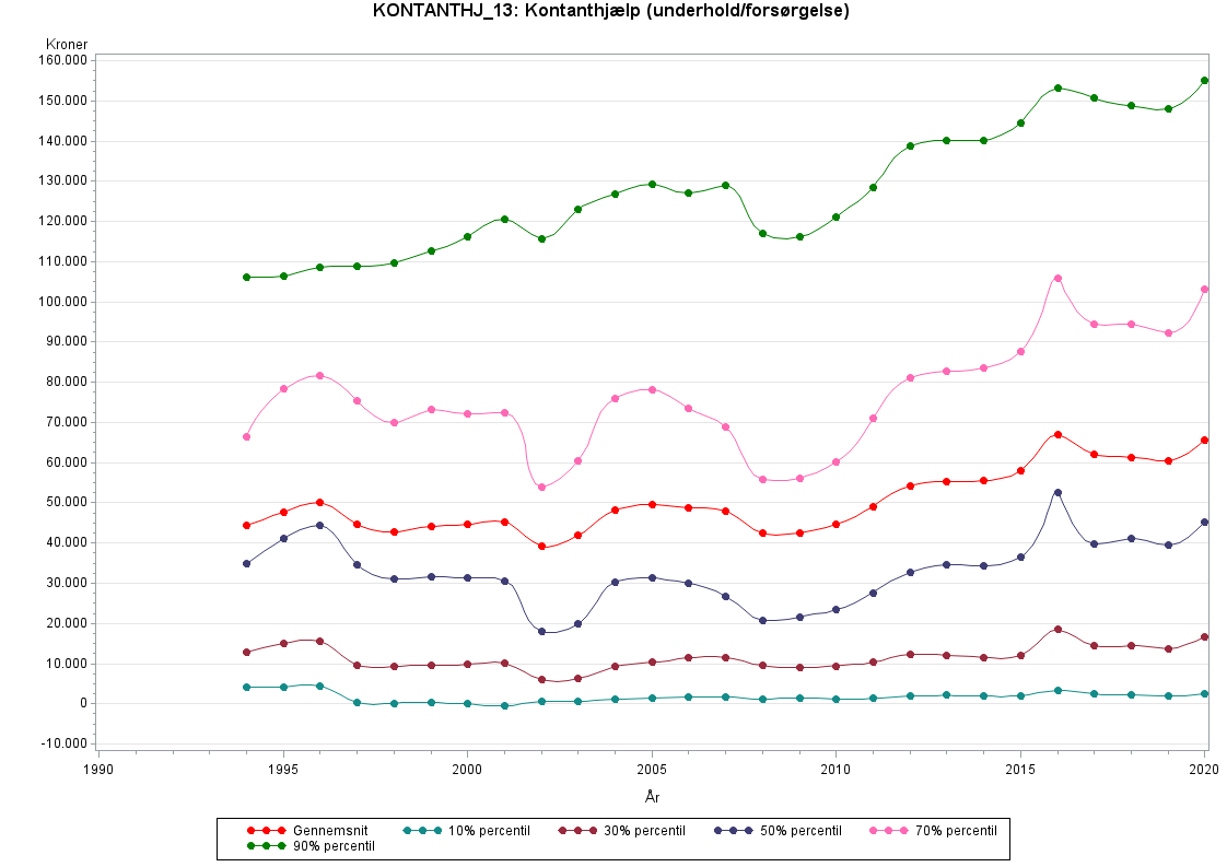 Før 1994 ligger kontanthjælp til forsørgelse i variablen KONT_GL (kontanthjælpsydelser 1980-1993).