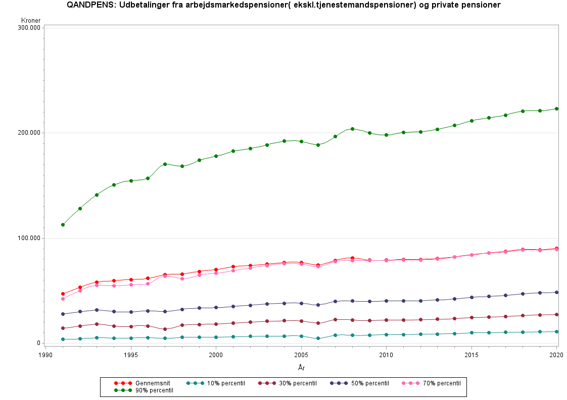 QANDPENS er lig med summen af QPENSPRI, pension fra udlandet (fra 1998) og pensionsudbetalinger fra tidligere arbejdsgiver (fra 1994).