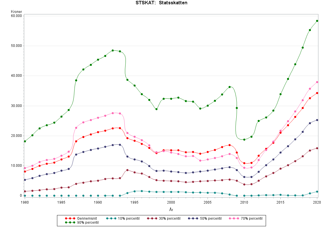 1986-reformen giver anledning til en betydelig stigning i STSKAT mellem 1986 og 1987 for de øverste deciler.