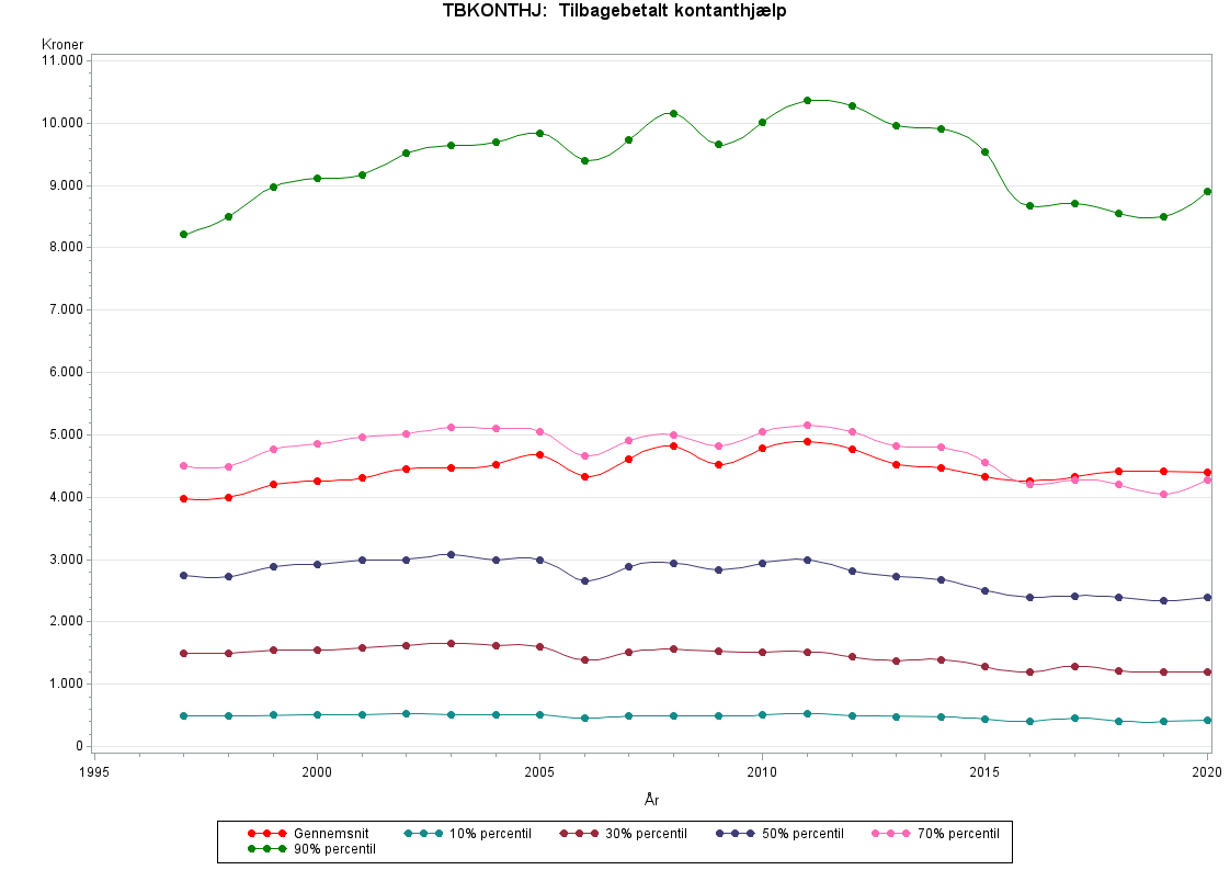 Tilbagebetalt kontanthjælpBeløb i kr. og ører.