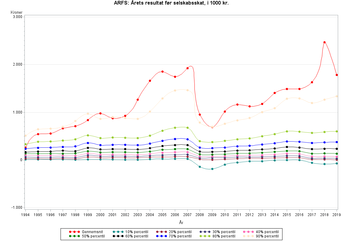 Til og med år 2016: Resultatet fremkommer som resultat før finansielle og ekstraordinære poster (RFEP) tillagt finansielle og ekstraordinære indtægter og fratrukket finansielle og ekstraordinære omkostninger.Fra år 2017: Resultatet fremkommer som resultat før finansielle og ekstraordinære poster (RFEP) tillagt finansielle indtægter og fratrukket finansielle omkostninger.