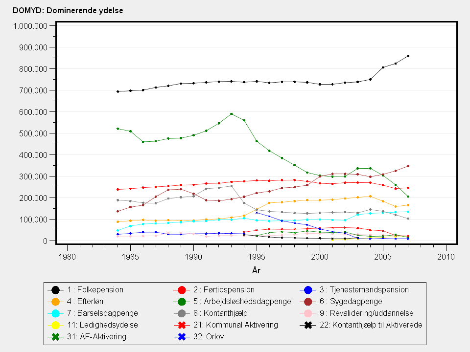I tilfælde hvor flere ydelser har samme varighed i året priorieteres (tallene angiver prioritetsrækkefølgen og ikke værdisættet) for årene 1995-2000.