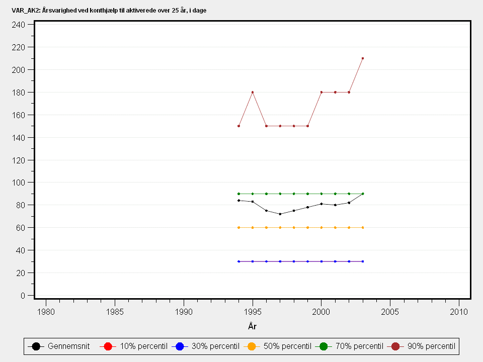 Årsvarighed af kontanthjælp til aktiverede under 25 år. Varigheden måles som dage i måneden(fastsat til 30 dage).Detaljeret beskrivelse