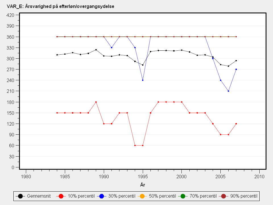 Årsvarighed af efterløn/overgangsydelse. Varigheden er målt i dage.Detaljeret beskrivelse