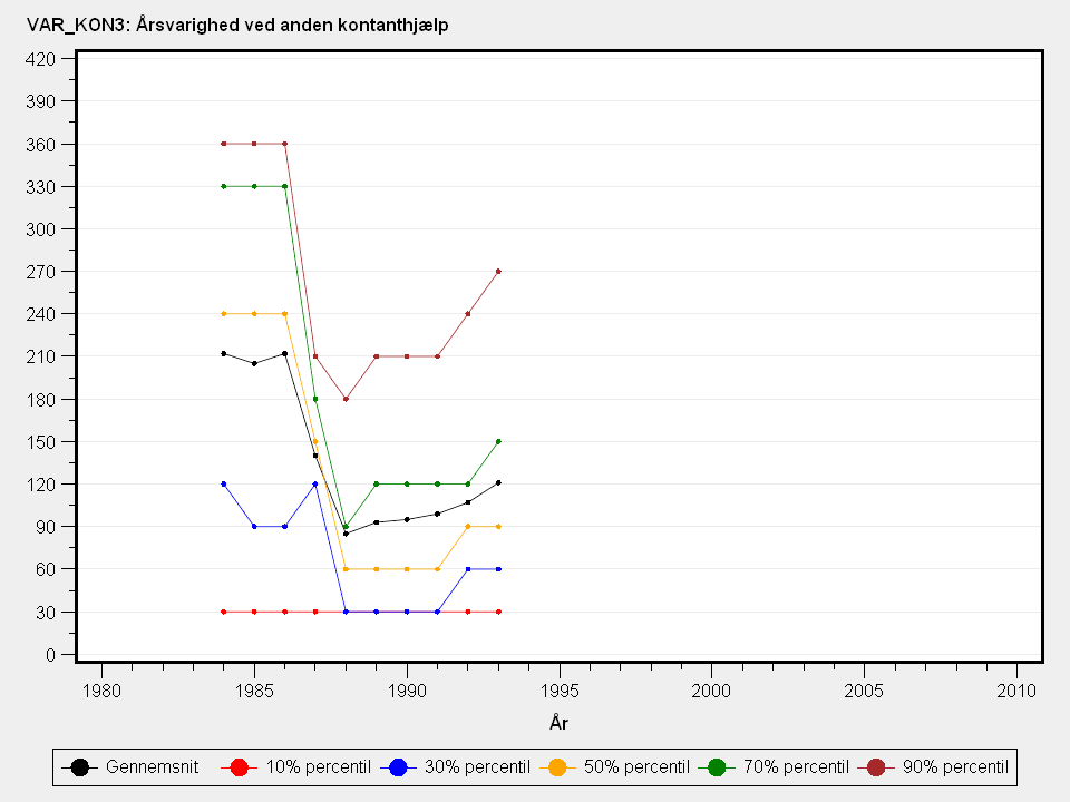 Årsvarighed af anden kontanthjælp. Varigheden måles i dage i måneden.Detaljeret beskrivelse