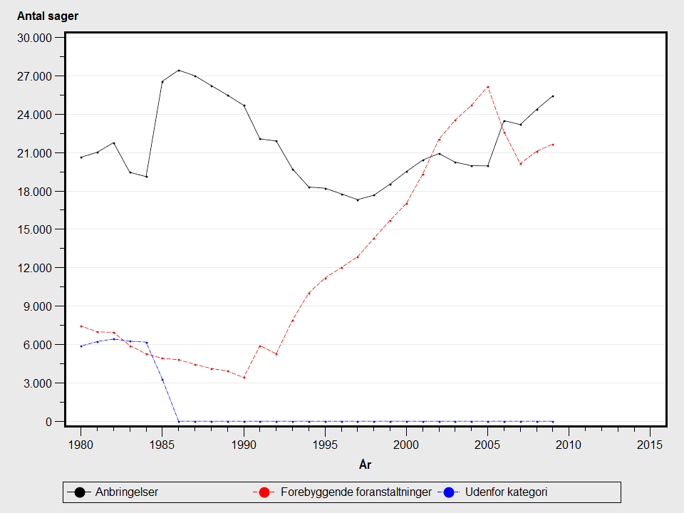 De største udsving i tallene for anbringelser og indsatser og støtte ses af bilag 0 (Graf) og bilag 1 (Tabel) nederst på siden. De største udsving sker i forlængelse af lovændringer i årene 1985, 1993, 2001 og 2006. Den seneste større reform, som forventes at påvirke tallene er Barnets Reform, som trådte i kraft 1. januar 2011. (Se nærmere beskrivelse om udsving i tallene under den detaljerede beskrivelse).