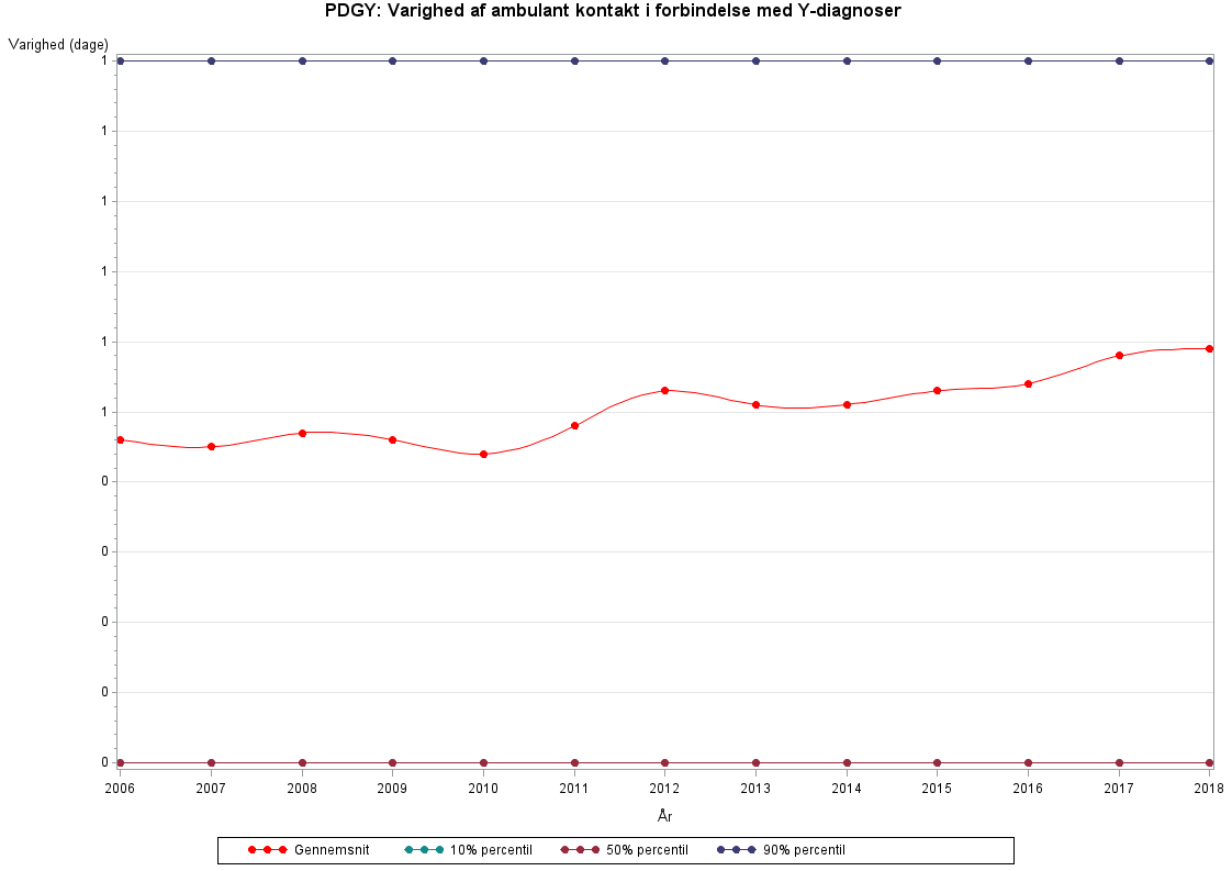 PDGY angiver varigheden (målt i dage) af patientens hhv. indlæggelser og ambulante kontakter i forbindelse med Y-diagnoser. Y-diagnoser er de diagnoser, som i diagnosegrupperingen DIAG99 er lig med kode '100' (Undersøgelser, forebyggende forholdsregler mm. af personer uden sygdomstegn eller uden oplysning om diagnose).Der skelnes mellem varighed af indlæggelser og ambulante kontakter i forbindelse med Y-diagnoser (PDGY), varighed af indlæggelser og ambulante kontakter i forbindelse med sygdom (PDGS), og varighed af indlæggelser og ambulante kontakter i forbindelse med fødsel (PDGF). Formålet med opdelingen i Y-, S- og F-diagnoser er at kunne analysere på de tre grupper separat.