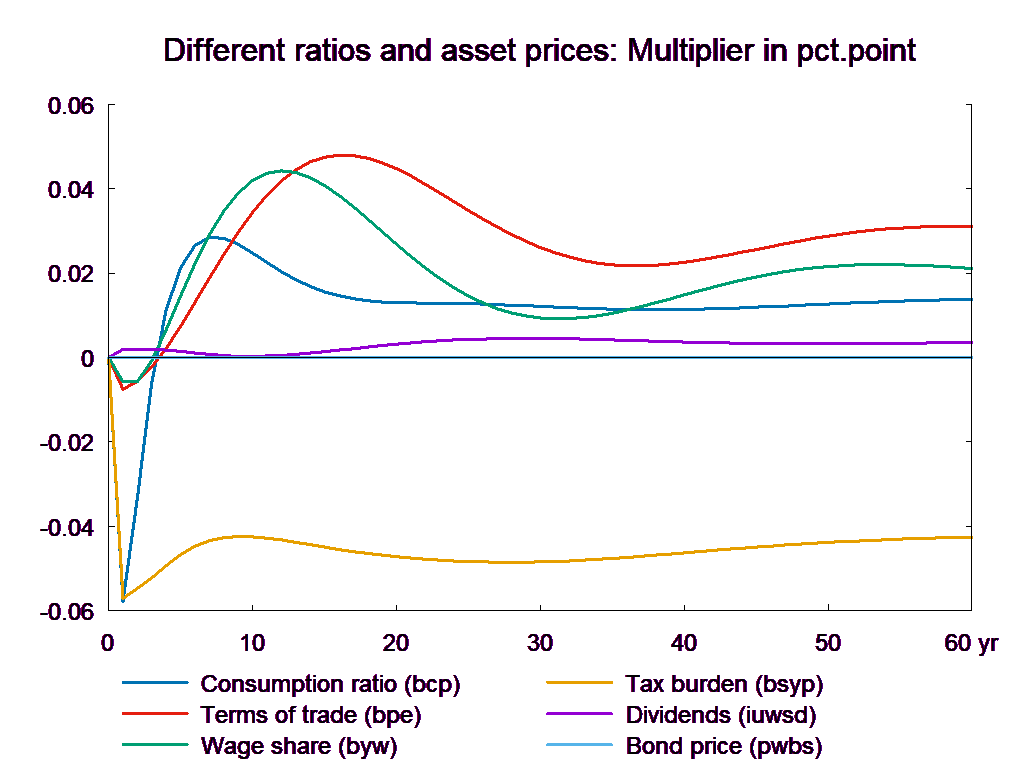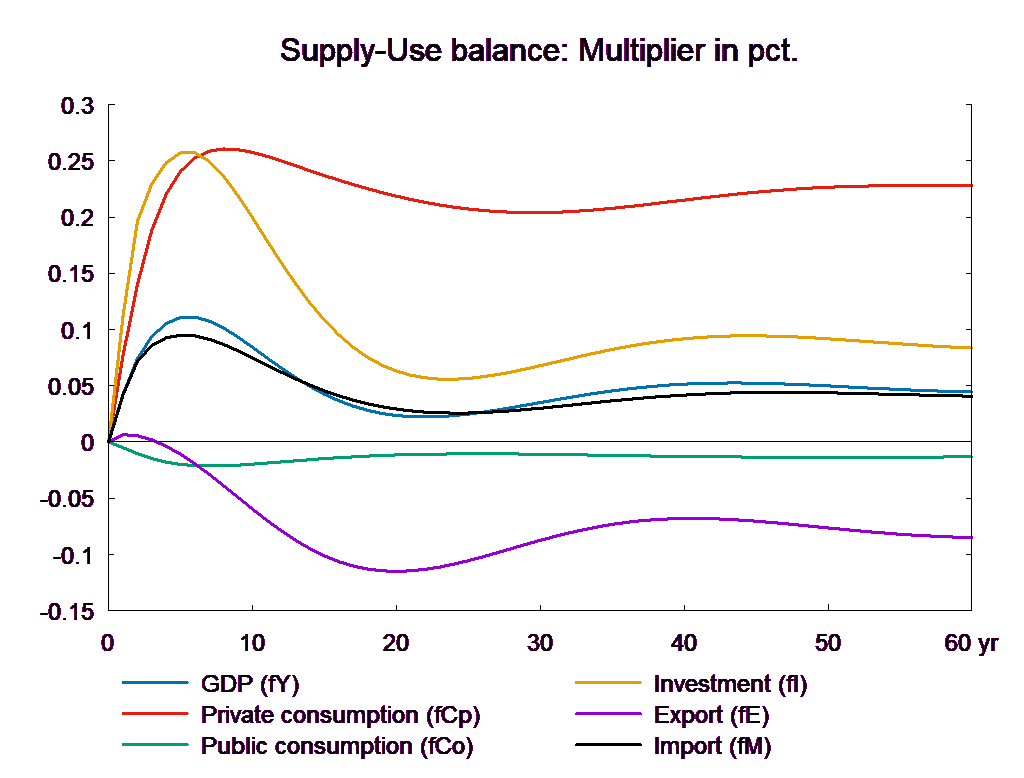 The VAT reduction affects the relationship between production costs and final market prices. Despite the rise in wages and output prices, consumption prices fall when VAT rates are reduced. Like a lower income tax, the lower VAT has a positive long-term effect on real income, which gives rise to a change in the composition of demand.
